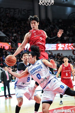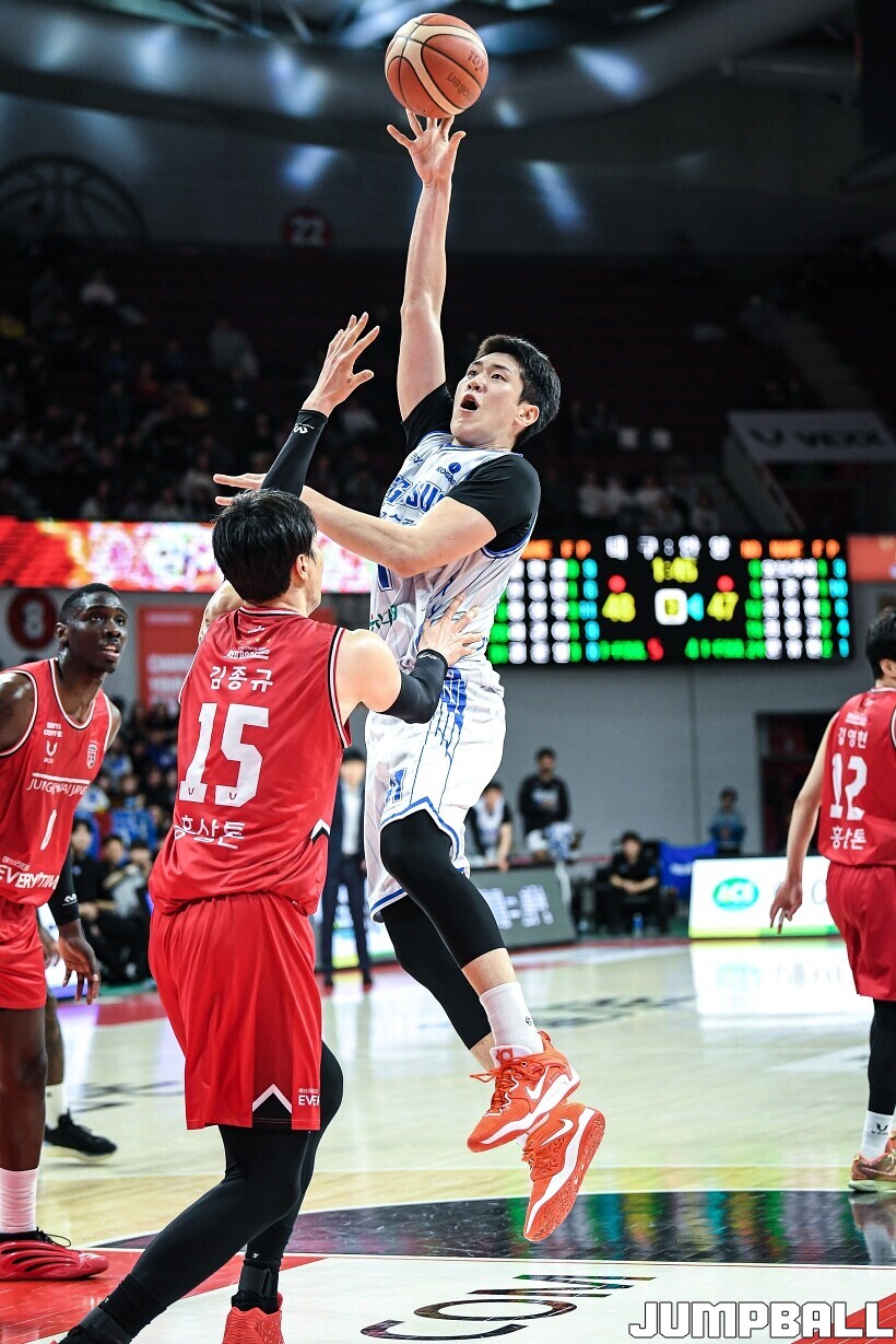 [점프볼=안양/유용우 기자] 7일 안양 정관장 아레나에서 열린 2025-2026 LG전자 프로농구 안양 정관장과 대구 한국가스공사의 경기, 한국가스공사 김준일이 공격을 시도하고 있다.