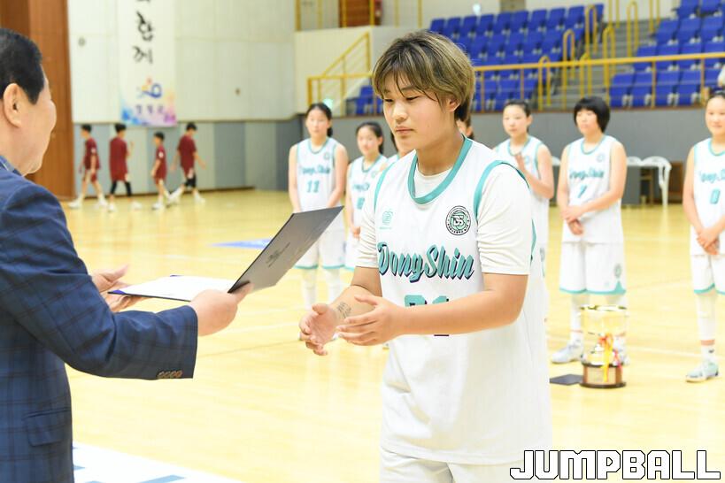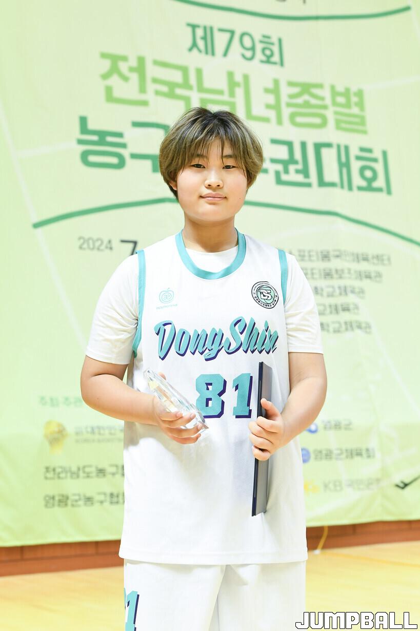 온양동신초 골밑 기둥 홍민서(172cm, C)은 이번 대회 평균 7점 9.2리바운드 1.2스틸 1.8블록을 기록하며 팀을 우승으로 이끌었고, MVP까지 차지하며 두 배의 기쁨을 누렸다.