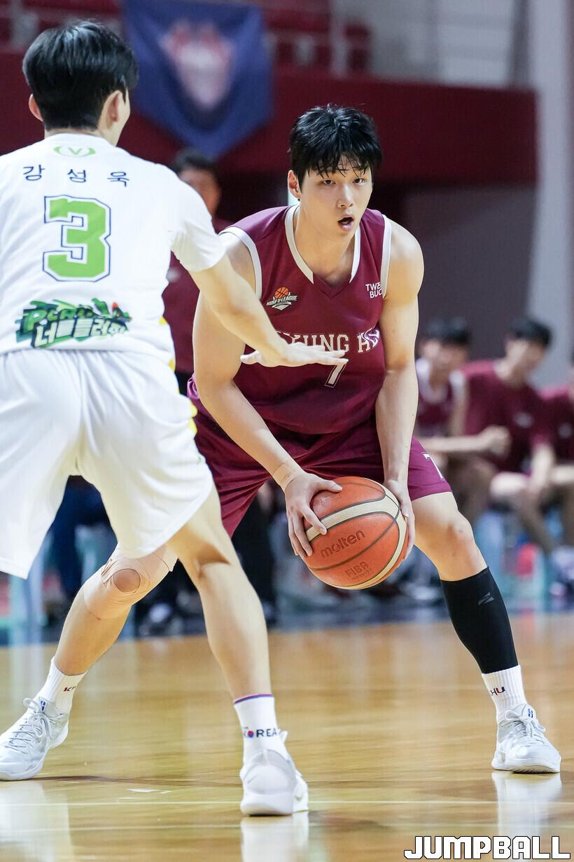 김서원은 6일 경희대 국제캠퍼스 선승관에서 열린 2024 KUSF 대학농구 U-리그 성균관대와의 홈경기에서 14점 11리바운드 6어시스트로 더블더블 기록하며 경희대의 13점 차(71-58) 완승을 이끌었다.
