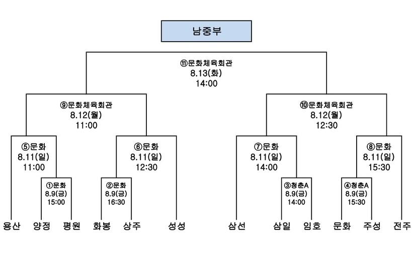 남중부 12강 결선은 9일 오후 2시 청춘체육관(A코트)에서 삼일중과 임호중 경기를 시작으로 양정중-평원중, 문화중-주성중, 화봉중-상주중이 대결한다.