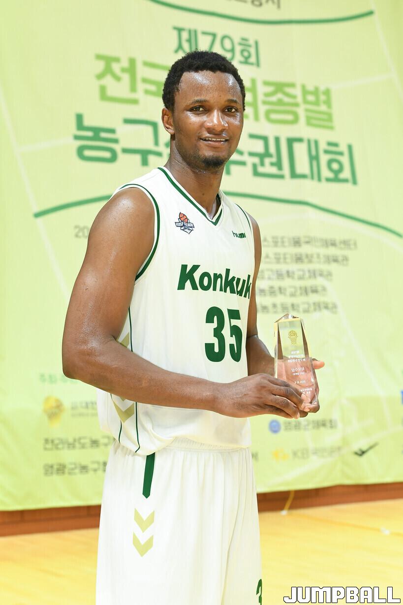 건국대가 좋은 성적을 거둘 수 있었던 건 프레디(203cm, C)가 골밑을 든든하게 버텨준 덕분이다. 프레디는 종별대회 MVP에 선정되었다.