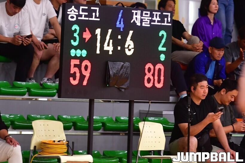 지난해 송도고에 인천 대표 자리를 내줬던 제물포고는 다시 인천 대표로 전국체전이 열리는 부산행을 준비한다. 제물포고 백종원이 35점으로 내외곽에서 득점력을 자랑하며 팀 승리를 이끌었다.