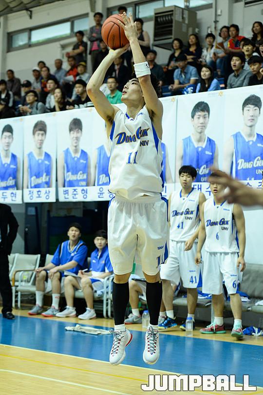 전반 종료와 동시에 중거리슛을 넣으며 예열을 마친 김승준은 3쿼터에만 3점슛 2개 포함 10득점을 몰아넣었다. 동국대는 덕분에 3쿼터 한때 19점차로 달아나며 승기를 잡을 수 있었다. 김승준의 이날 최종기록은 18득점 6리바운드.