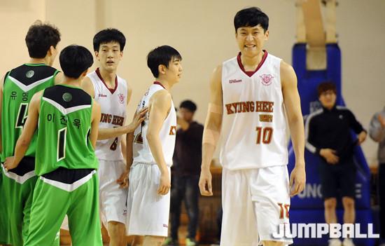 그러나 경희대는 19일 수원 경희대학교체육관에서 열린 2015 남녀 대학농구리그 건국대와의 연장 승부 끝에 79-71로 승리를 챙겼다. 연장전 경희대가 6-2로 리바운드에서 앞서며 이겼다.