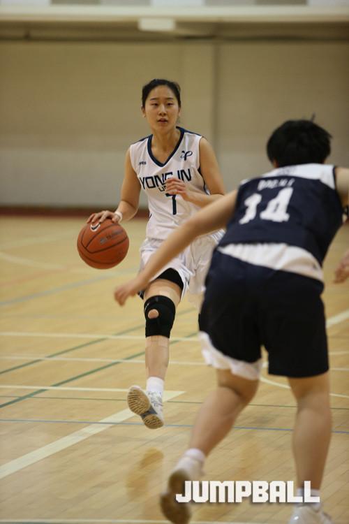 이런 흐름 속에 용인대 4학년 조은정이 단국대를 쫓는 데 앞장섰다. 상대에 맞선 공격적인 움직임이 주효했다. 여기에 박현영의 3점슛이 림을 가르며 분위기를 빼앗아 왔다.