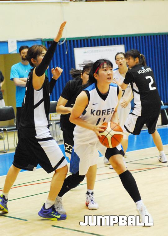 높이에서는 확연한 차이가 났다. 대표팀은 최정민, 이수연의 파이팅이 좋았지만, 김소담, 최원선, 허기쁨 등 KDB생명의 빅맨진 높이에는 미치지 못 했다. 제공권을 뺏기다 보니 주도권을 가져오기가 쉽지 않았다.