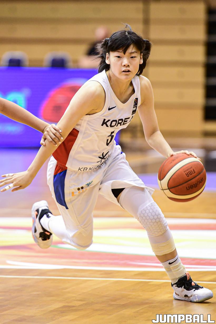 10일 헝가리 데브레첸 올라 가보 스포츠홀에서 열린 2022 FIBA U17 여자농구 월드컵 캐나다와의 조별 리그 2차전 경기, U17 여자농구 대표팀 양인예가 빠른 발을 이용하여 돌파를 시도하고 있다.