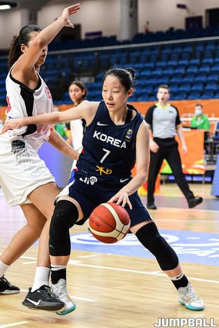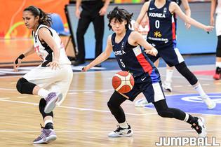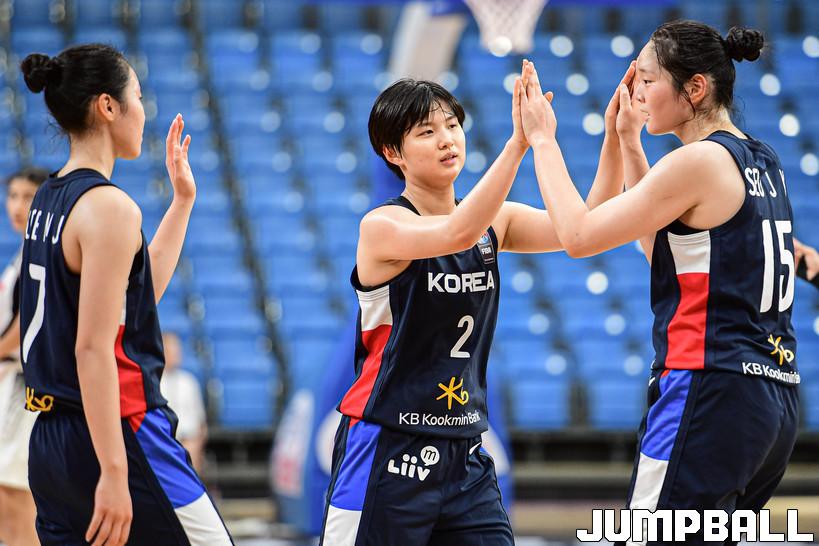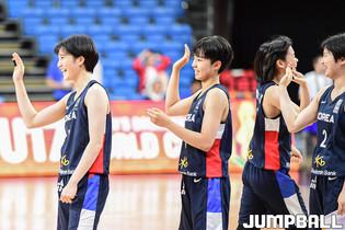 9일 헝가리 데브레첸 포닉스 아레나에서 열린 2022 FIBA U17 여자농구월드컵 한국과 이집트의 경기, 여자 대표팀 허유정과 고진영이 하이파이브를 하고 있다.