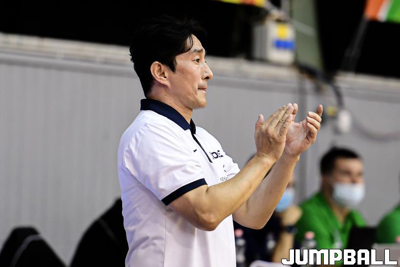 15일 헝가리 데브레첸 올라 가보 스포츠홀에서 열린 2022 FIBA U17 여자농구월드컵 한국과 슬로베니아의 순위 결정전 경기, U17 여자농구대표팀 이상훈 감독이 선수들을 독려하고 있다.