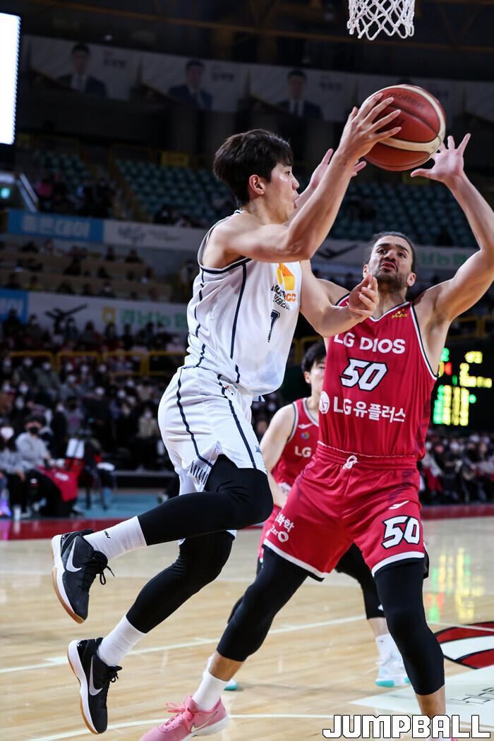 김지완은 “변칙 라인업으로 나갔는데 초반에 버텨주지 못해서 이승현과 허웅이 빨리 나왔다. 들어온 선수들이 제 역할을 잘 해서 1쿼터 남은 시간을 잘 마무리했다”고 당시 상황을 떠올렸다.