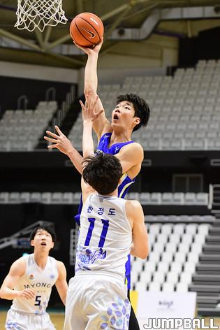 [점프볼=수원/박상혁 기자] 25일 서수원칠보체육관에서 열린 2021 KUSF 대학농구 U-리그 연세대와 명지대의 경기, 연세대 김동현이 레이업슛을 시도하고 있다.
