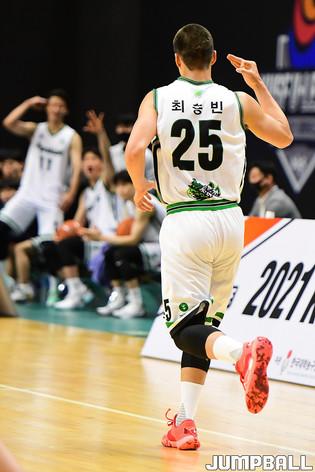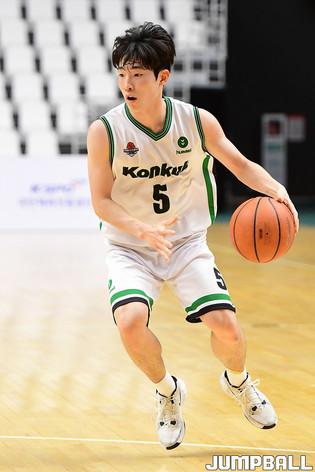 [점프볼=수원/박상혁 기자] 25일 서수원칠보체육관에서 열린 2021 KUSF 대학농구 U-리그 건국대와 조선대의 경기, 건국대 조환희가 3점슛을 시도하고 있다.