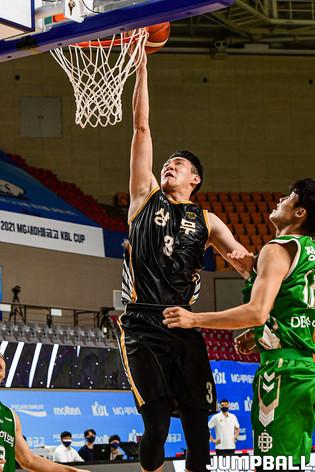 13일 경상북도 상주시 상주실내체육관에서 열린 2021 MG새마을금고 KBL컵 대회 원주 DB와 상무의 경기, 상무 한희원이 레이업슛을 시도하고 있다.