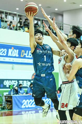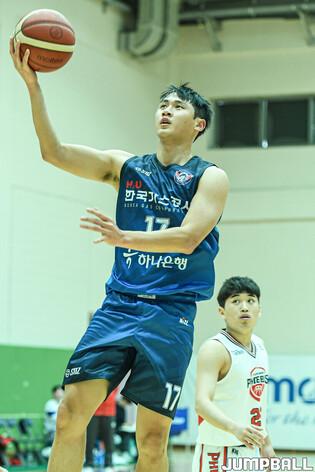 18일 이천 LG챔피언스파크에서 열린 2022-2023 KBL D리그 대구 한국가스공사와 울산 현대모비스의 경기, 한국가스공사 양재혁이 레이업슛을 시도하고 있다.