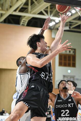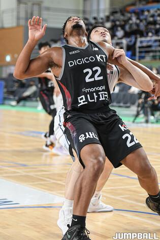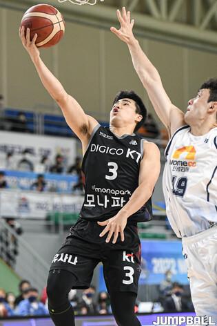 6일 통영체육관에서 열린 2022 MG새마을금고 KBL 컵대회 부산 KT와 전주 KCC의 경기, KT 김민욱이 골밑에서 슛을 시도하고 있다.