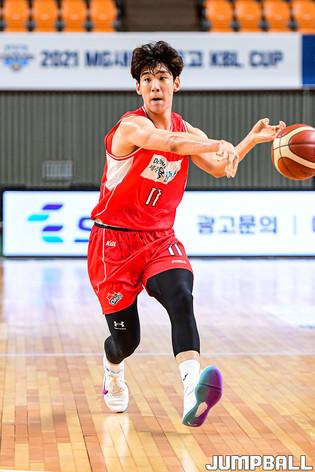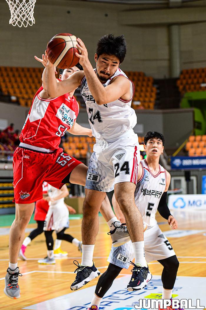 14일 경상북도 상주시 상주실내체육관에서 열린 2021 MG새마을금고 KBL컵 대회 고양 오리온과 안양 KGC인삼공사의 경기, KGC인삼공사 양승면이 리바운드를 잡아내고 있다.