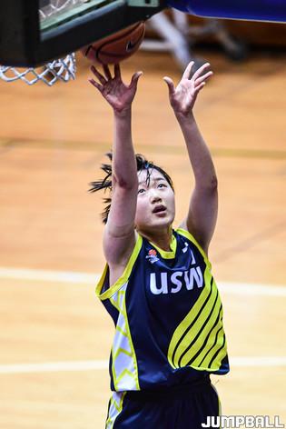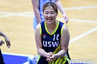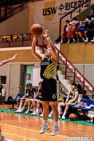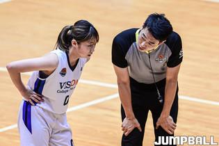20일 수원대 체육관에서 열린 2022 대학농구 U-리그 수원대와 전주비전대의 경기, 전주비전대 서현경이 심판과 대화를 나누고 있다.