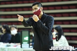 26일 고려대 화정체육관에서 열린 2022 KUSF 대학농구 U-리그 고려대와 경희대의 경기, 경희대 김현국 감독이 벤치에서 작전을 지시하고 있다.