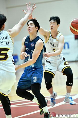곽정훈(22점 3점슛 4개 8리바운드 2어시스트 4스틸), 이근휘(17점 3점슛 3개 5리바운드)가 팀 공격을 이끌며 첫 승을 합작했다.