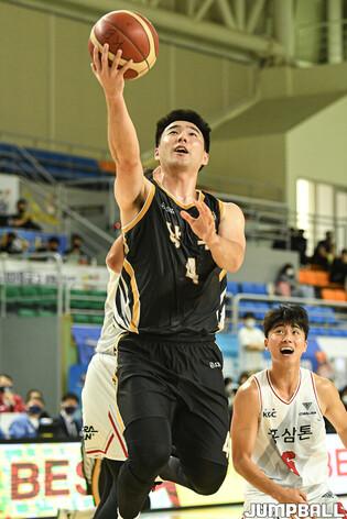 5일 통영체육관에서 열린 2022 MG새마을금고 KBL 컵대회 안양 KGC인삼공사와 상무의 경기, 상무 허훈이 공격을 시도하고 있다.