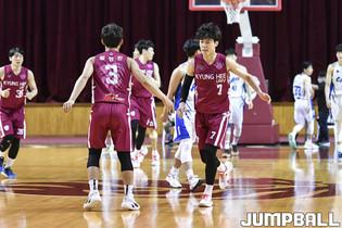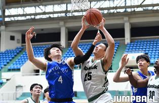 25일 용인 명지대체육관에서 열린 2022 KUSF 대학농구 U-리그 명지대와 건국대의 경기, 명지대 김태현이 3점슛을 던지고 있다.