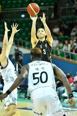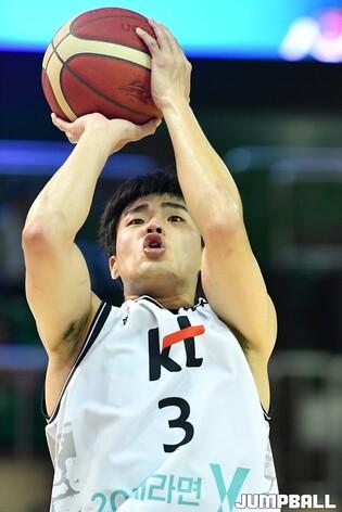 8일 군산월명체육관에서 열린 2023 MG새마을금고 KBL 컵대회 상무와 KT의 예선 경기, KT 정성우가 슛을 시도하고 있다. [점프볼=군산/유용우 기자]