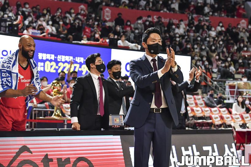 전희철 감독이 이끄는 서울 SK는 4일 잠실학생체육관에서 안양 KGC와 2021-2022 KGC인삼공사 정관장 프로농구 챔피언결정전 2차전을 치른다.