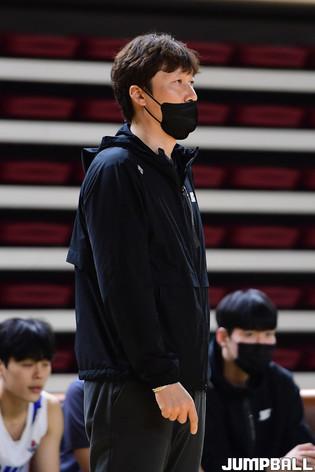 18일 고려대 화정체육관에서 열린 2022 KUSF 대학농구 U-리그 고려대와 단국대 경기, 고려대 주희정 감독이 선수들에게 지시를 하고 있다.