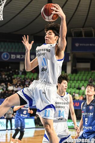 7일 대구체육관에서 열린 2022-2023 SKT 에이닷 프로농구 대구 한국가스공사와 서울 삼성의 경기, 삼성 이원석이 리바운드를 잡아내고 있다.