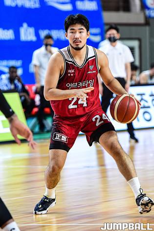 12일 경상북도 상주시 상주실내체육관에서 열린 '2021 MG새마을금고 KBL컵 대회' 부산 KT와 안양 KGC인삼공사의 경기, KGC인삼공사 우동현이 공격을 시도하고 있다.