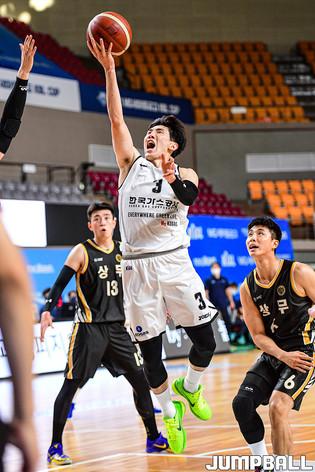 [점프볼=상주/박상혁 기자] 11일 경상북도 상주시 상주실내체육관에서 열린 '2021 MG새마을금고 KBL컵 대회' 한국가스공사와 상무 경기, 상무 강상재가 레이업슛을 시도하고 있다.