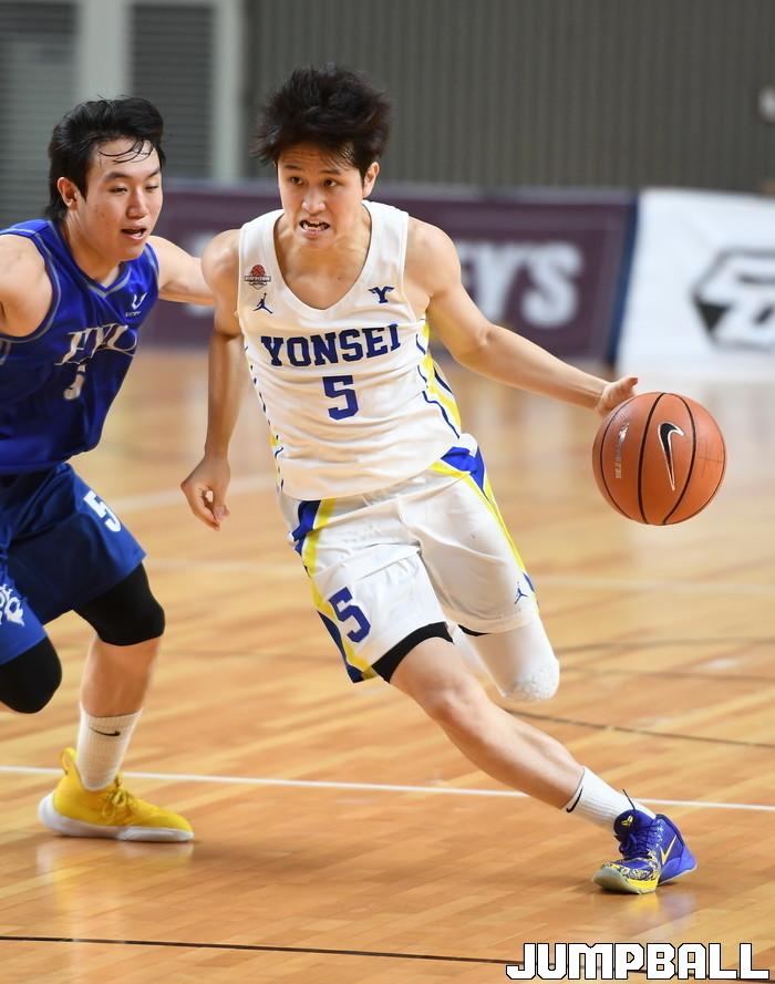 연세대의 양준석은 29일 연세대 신촌캠퍼스 체육관에서 열린 2022 KUSF 대학농구 U-리그 단국대와 맞대결에서 13점 8어시스트를 기록했다.