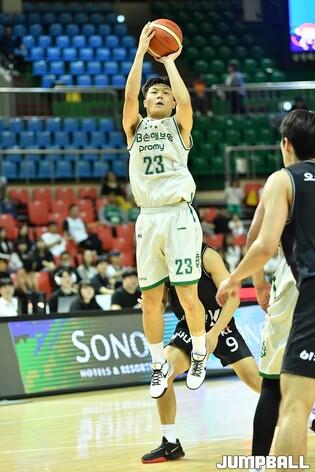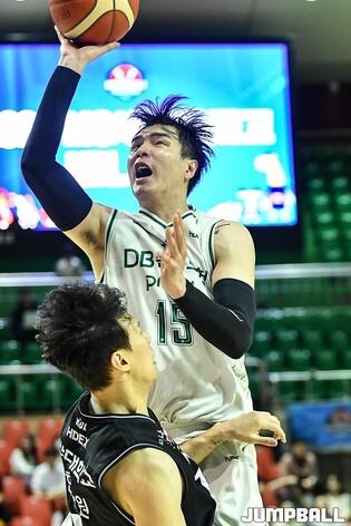 12일 군산월명체육관에서 열린 2023 MG새마을금고 KBL 컵대회 DB와 KT의 예선 경기, DB 알바노가 슛을 던지고 있다. [점프볼=군산/유용우 기자]