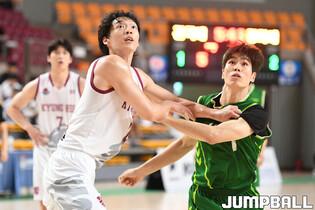 [점프볼=상주/박상혁 기자] 24일 상주체육관 신관에서 열린 제40회 MBC배 전국대학농구 상주대회 결선(6강) 토너먼트 건국대와 경희대의 경기, 건국대 조환희가 골밑까지 들어와 패스를 시도하고 있다.