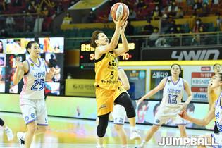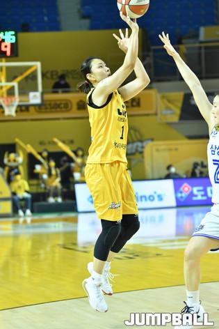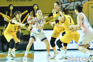 [점프볼=청주/유용우 기자] 11일 청주실내체육관에서 열린 'KB국민은행 Liiv M 2020-2021 여자프로농구' 청주 KB와 용인 삼성생명의 챔피언결정전 3차전, KB가 수비 총력전을 펼치고 있다.