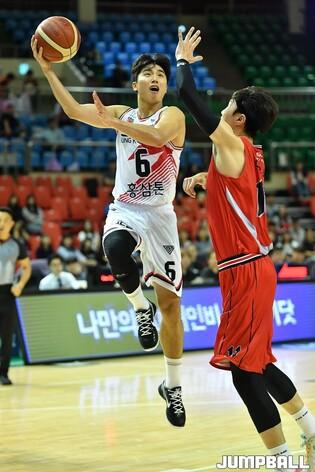 11일 군산월명체육관에서 열린 2023 MG새마을금고 KBL 컵대회 현대모비스와 정관장의 예선 경기, 정관장 박지훈이 공격을 시도하고 있다. [점프볼=군산/유용우 기자]