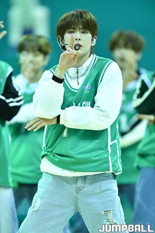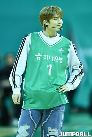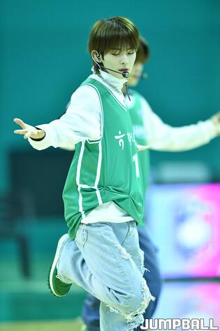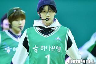 26일 부천체육관에서 열린 우리은행 우리WON 2023-2024 여자프로농구 하나원큐와 신한은행의 경기, 하나원큐 홈경기장을 방문한 보이그룹 루네이트가 하프타임 공연을 펼치고 있다. [점프볼=부천/유용우 기자]