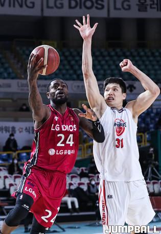 [점프볼=윤민호 기자] 12일 창원실내체육관에서 열린 2020-2021 현대모비스 프로농구 창원 LG와 울산 현대모비스의 경기