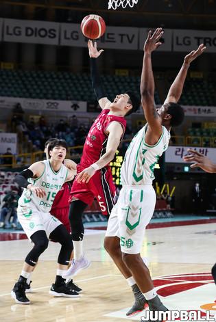 [점프볼=윤민호 기자] 22일 창원실내체육관에서 열린 2020-2021 현대모비스 프로농구 창원 LG와 원주 DB의 경기