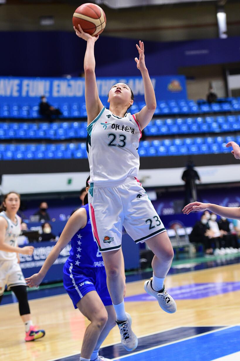 부천 하나원큐는 30일 인천도원체육관에서 열린 신한은행 SOL 2022~2023 퓨처스리그 아산 우리은행과의 맞대결에서 73-67으로 승리했다. 이하은은 36분 29초를 뛰며 25점 14리바운드 3어시스트로 더블더블을 작성하며 2연승을 이끌었다.
