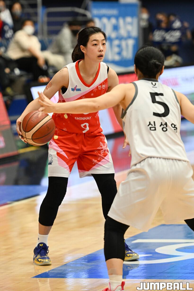 인천 신한은행 이경은은 25일 인천도원체육관에서 벌어진 청주 KB스타즈와의 신한은행 SOL 2022~2023 여자프로농구 홈경기에서 84-79의 승리에 공헌했다.