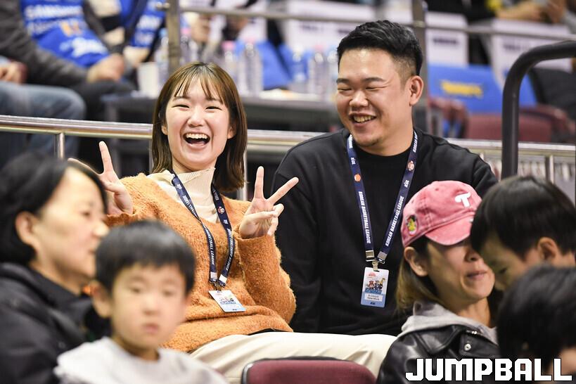서울 삼성과 창원 LG의 2025-2026 LG전자 프로농구 정규시즌 2라운드 맞대결이 열린 12일 잠실체육관. B리그 관계자들이 현장을 찾아 눈길을 끌었다. 주인공은 B리그에서 각각 홍보, 운영을 담당하고 있는 야나세 하루카, 미우라 케이야였다.