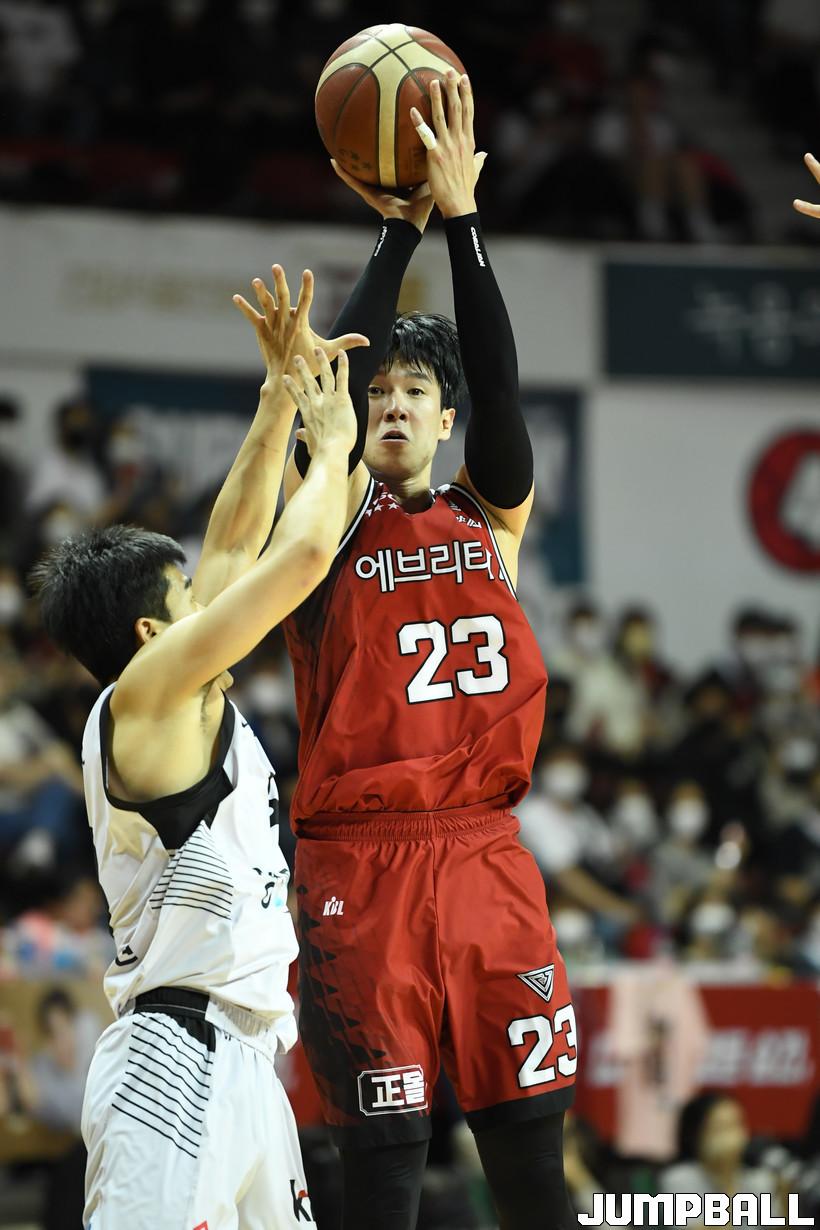 “한희원 선수도 정성우 선수도 나를 막기 위해서 나왔고 이 상황에서 이기려면 내가 많이 움직여서 공격을 원활하게 해야 했다. 이제는 오히려 수비를 달고 슛을 쏘는 게 더 쾌감이 있기도 하고 집중력도 더 생기는 거 같다. 죽기 살기로 뛰었다.”