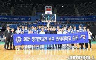 [점프볼=고양/박상혁 기자] 27일 고양 소노 아레나에서 열린 2024 정기 연고전 경기, 연세대가 고려대에 57-54로 승리했다.