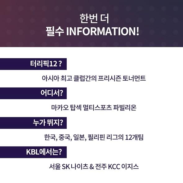 [점프볼=편집부] 지금 이 순간 중국농구월드컵을 뜨겁게 달구고 있는 아시아의 국가대표 농구 스타들. 월드컵 축제가 끝나도 그들을 다시 한 번 만날 수 있는 기회가 있다. 바로 오는 17일 마카오 탑섹 멀티스포츠 파빌리온에서 개최되는 동아시아 슈퍼리그-터리픽12. 한국, 중국, 일본, 필리핀의 프로팀들이 자웅을 겨루는 가운데, 이 속에는 총 11명의 현직 월드컵 국가대표가 함께하고 있다. KBL에서는 김선형, 최준용(이상 서울 SK), 이정현(전주 KCC)과 더불어 중국의 궈아이룬(랴오닝 플라잉 타이거스), 일본의 고스케 타케우치(우츠노미야 브렉스), 필리핀의 준 마르 파하르도(산미구엘 비어맨)까지. 마카오를 농구 열기로 물들일 국가대표들을 살펴보자.