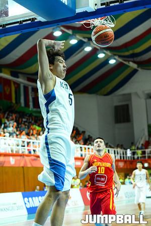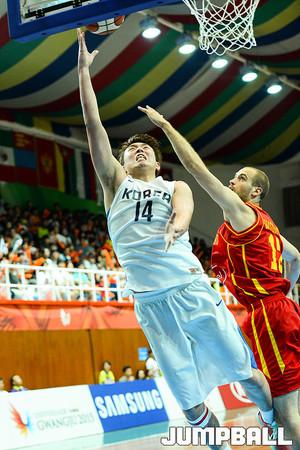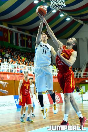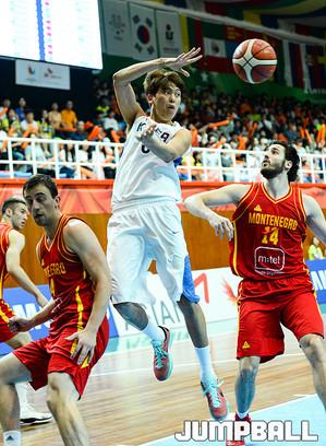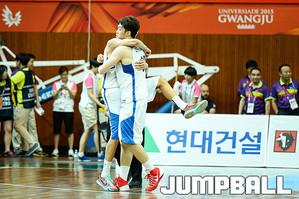 [점프볼=광주/유용우 기자] 11일 광주대학교체육관에서 열린 '2015 광주 유니버시아드대회' 한국과 몬테네그로와의 9-16 순위결정전 경기, 한국 유니버시아드 대표팀 한희원이 동료의 슛 성공을 확인하고 림을 잡고 있다.