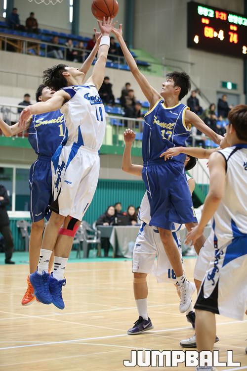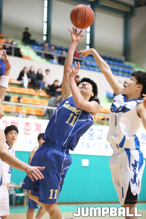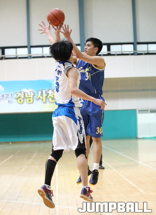 22일 삼천포 실내체육관에서 열린 제53회 춘계전국남녀 중고농구연맹전 남고부 8강전 부산중앙고와 삼일상고의 경기에서 삼일상고가 78-74로 부산중앙고를 꺾고 4강에 올랐다.