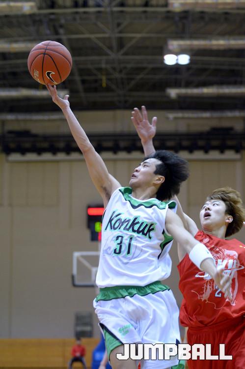 건국대가 지난 31일 건국대학교 글로컬캠퍼스 체육관에서 열린 2016 남녀 대학농구리그에서 단국대에 75-71로 이기며 대학리그 뒤늦은 첫 승을 올렸다.