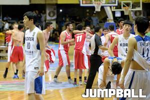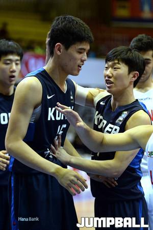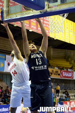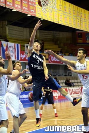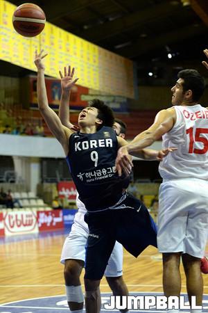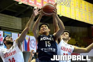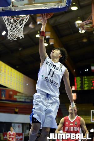 31일 이란(테헤란)에서 열린 제24회 FIBA U18 아시아농구선수권대회 3.4위 결정전 한국 과 레바논 의 경기, 한승희가 레바논 수비를 제치고 골밑슛을 시도하고있다.