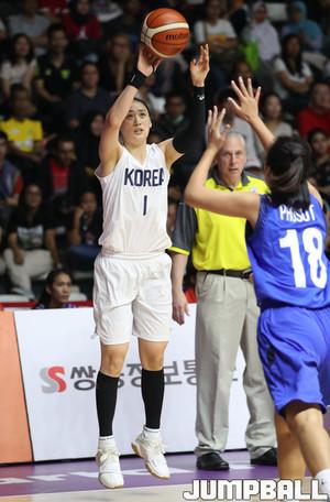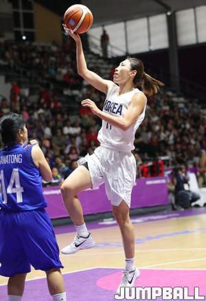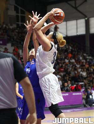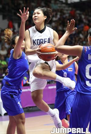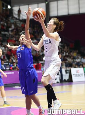 여자농구대표팀 코리아는 26일(이하 한국시간) 인도네시아 자카르타 겔로라 붕 카르노(GBK) 농구장에서 열린 2018 자카르타-팔렘방 아시안게임 여자농구 8강 태국과의 경기, 코리아팀의 최은실이 리바운드를 잡아내고 있다.